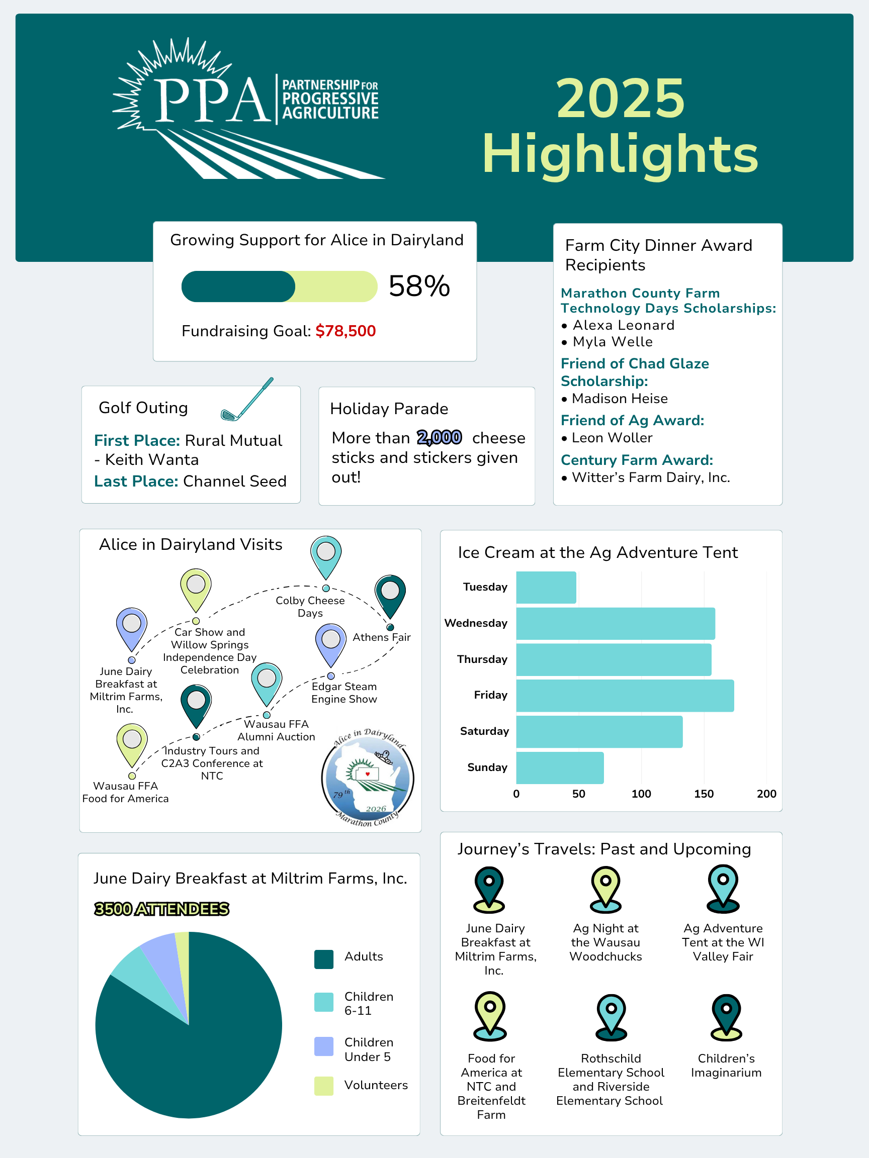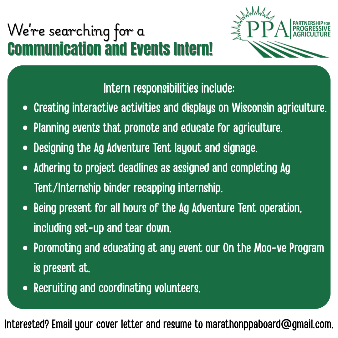"The Partnership for Progressive Agriculture develops and supports valuable networks in and around the Marathon County regional community to educate, promote, and advocate for a diverse and sustainable agriculture."